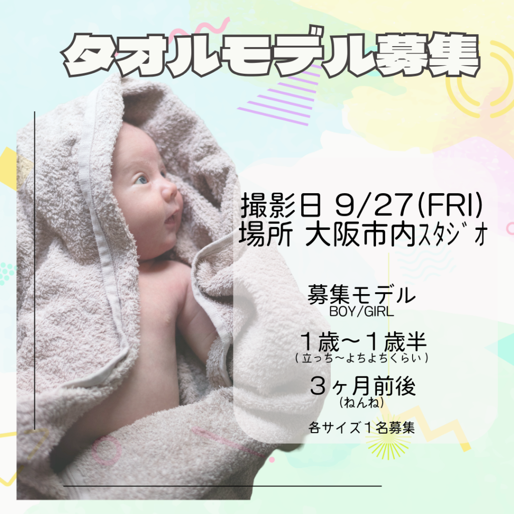 ベビー用タオルのモデルさんにチャレンジしてみませんか?
