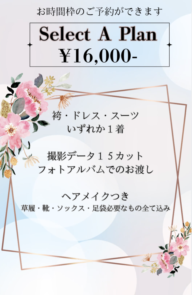 袴・ドレス・スーツから1着選んでいただけます。