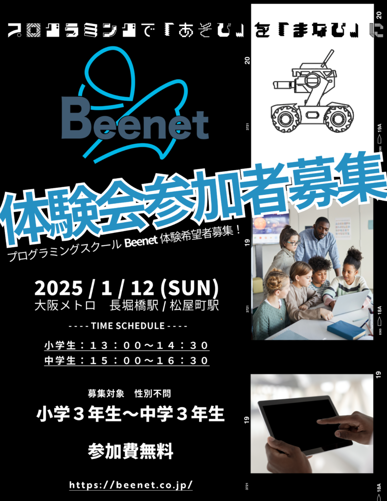 ラジコンロボットを使って、楽しみながらプログラミングの基礎を学べる新しいスクール 【 Beenet 】の広告モデル募集と体験会の参加者同時募集!