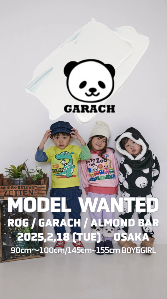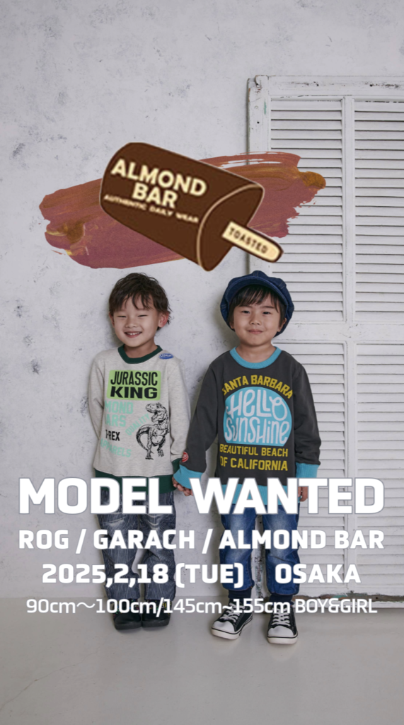 カジュアルでさり気にクールなデザインの男の子ブランドR.O.Gをはじめ、GARACH・ALMOND BARの3つのブランドの公式モデルさん募集!