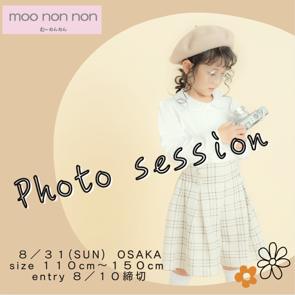 moo non non のお洋服を着て、プロのヘアセット&メイクを体験しながら撮影できる特別な撮影会を開催いたします!