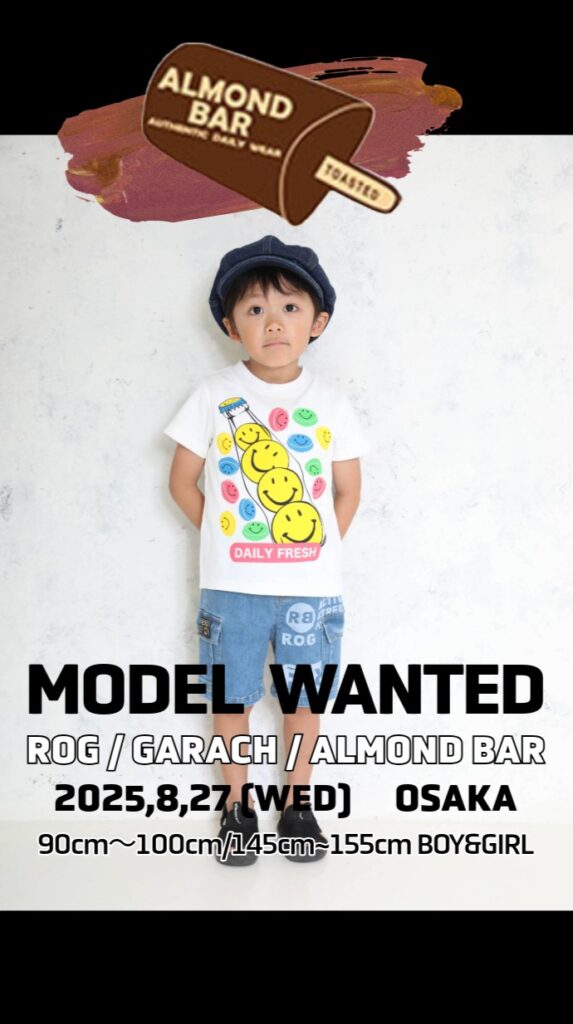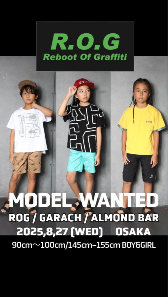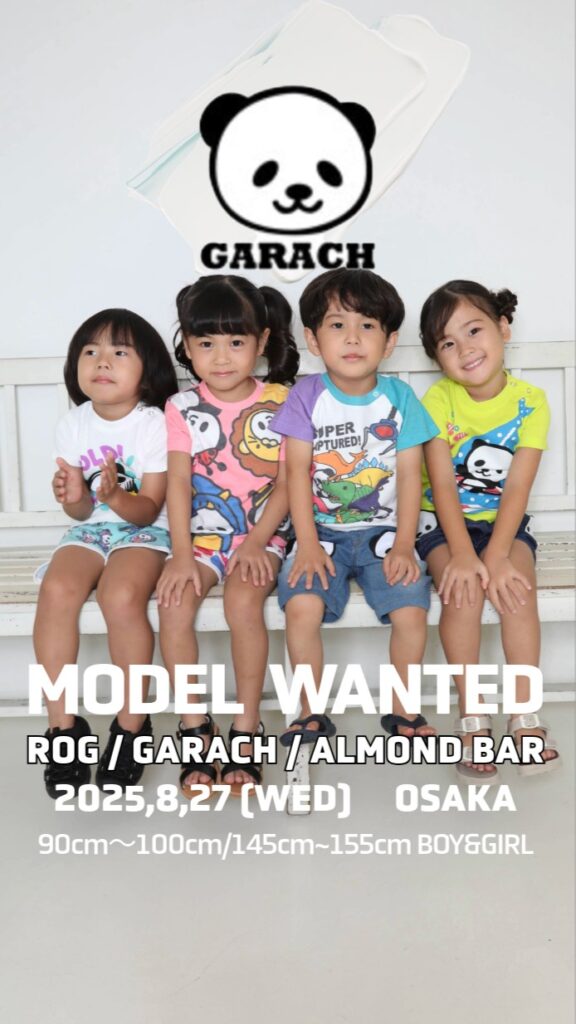 【R.O.G-Reboot Of Graffiti-】 カジュアルでさり気にクールなデザインの男の子ブランド 【GARACH】 おなじみのパンダをメインに、かわいいキャラクターたちがどんどん登場 【ALMOND BAR】 POPでCUTEなアメカジブランド 90〜フリーサイズまで展開してるので親子リンクコーデも楽しめます。