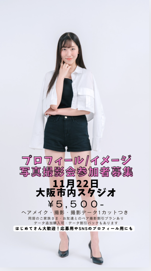 A. プロのヘアメイクスタッフがナチュラルで魅力を引き出すスタイルを施します。雑誌応募やオーディション用の指定があれば対応可能です。