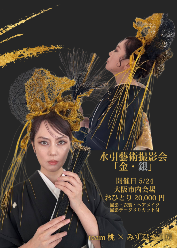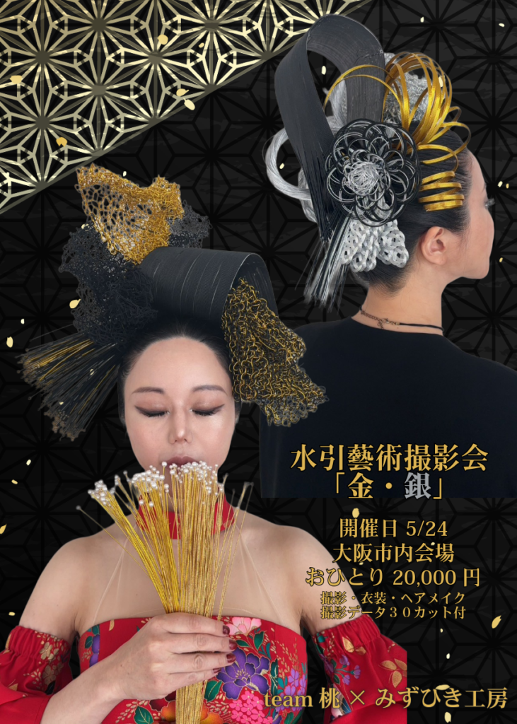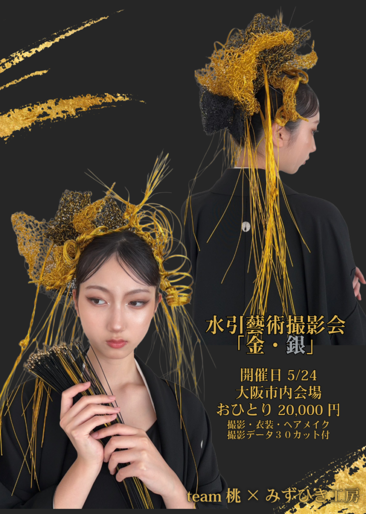 水引作家 二階堂泰子氏の水引を使用したヘアアートで、“纏う作品”としての美しさを表現する特別撮影会。
